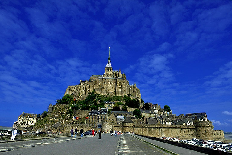 10世紀の修道院設立以来、この島は巡礼地として栄えてきました。当時から周辺の潮の干満差は激しく、巡礼者たちは島と陸がつながる干潮時をじっと待って、島へと渡っていたそうです。しかし、一度彼方まで引いた潮が押し寄せる速さは、“馬の駆け足”と例えられたほどで、多くの巡礼者が潮に飲まれ命を落としたといいます。19世紀にようやく島と陸をつなぐ堤防ができ、この悲劇の歴史は幕を閉じました。
